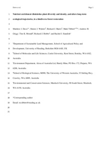 Nutrient enrichment diminishes plant diversity and density, and alters long-term ecological trajectories, in a biodiverse forest restoration