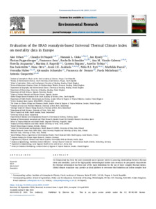 Evaluation of the ERA5 reanalysis-based Universal Thermal Climate Index on mortality data in Europe.