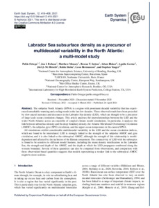 Labrador Sea subsurface density as a precursor of multidecadal variability in the North Atlantic: a multi-model study.
