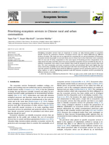 Prioritising ecosystem services in Chinese rural and urban communities.