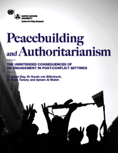 Day, A., von Billerbeck, S. ORCID: https://orcid.org/0000-0003-0154-1944, Tansey, O. and Al Maleh, A., (2021) Peacebuilding and authoritarianism: the unintended consequences of UN engagement in post-conflict settings. Report. United Nations University pp64. ISBN 9789280865356