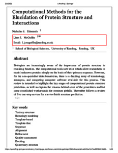 Edmunds, N. S. and McGuffin, L. J. ORCID: https://orcid.org/0000-0003-4501-4767 (2021) Computational methods for the elucidation of protein structure and interactions. In: Owens, R. J. (ed.) Methods Molecular Biology: Structural Proteomics. Methods Molecular Biology, 2305. Springer Nature, pp. 23-52. ISBN 9781071614068 doi: 10.1007/978-1-0716-1406-8_2