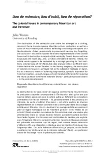 Lieu de mémoire, lieu d’oubli, lieu de réparation?: the colonial house in contemporary Mauritian art and literature