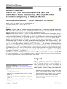 Evidence for a causal association between milk intake and cardiometabolic disease outcomes using a two-sample Mendelian Randomization analysis in up to 1,904,220 individuals