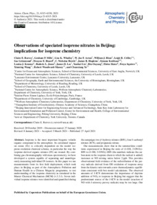Reeves, C. E. ORCID: https://orcid.org/0000-0003-4071-1926, Mills, G. P., Whalley, L. K., Acton, W. J. F., Bloss, W. J. ORCID: https://orcid.org/0000-0002-3017-4461, Crilley, L. R. ORCID: https://orcid.org/0000-0003-2268-9956, Grimmond, S. ORCID: https://orcid.org/0000-0002-3166-9415, Heard, D. E. ORCID: https://orcid.org/0000-0002-0357-6238, Hewitt, C. N. ORCID: https://orcid.org/0000-0001-7973-2666, Hopkins, J. R. ORCID: https://orcid.org/0000-0002-0447-2633, Kotthaus, S. ORCID: https://orcid.org/0000-0002-4051-0705, Kramer, L. J. ORCID: https://orcid.org/0000-0002-0823-6638, Jones, R. L., Lee, J. D. ORCID: https://orcid.org/0000-0001-5397-2872, Liu, Y., Ouyang, B., Slater, E., Squires, F. ORCID: https://orcid.org/0000-0002-3364-4617, Wang, X. ORCID: https://orcid.org/0000-0002-1982-0928, Woodward-Massey, R. and Ye, C. ORCID: https://orcid.org/0000-0002-5417-2671 (2021) Observations of speciated isoprene nitrates in Beijing: implications for isoprene chemistry. Atmospheric Chemistry and Physics, 21 (8). pp. 6315-6330. ISSN 1680-7316 doi: 10.5194/acp-21-6315-2021