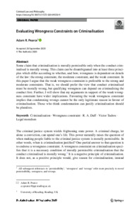 Pearce, A. R. ORCID: https://orcid.org/0000-0003-0044-6558 (2022) Evaluating wrongness constraints on criminalisation. Criminal Law and Philosophy, 16. pp. 57-76. ISSN 1871-9791 doi: 10.1007/s11572-020-09550-9