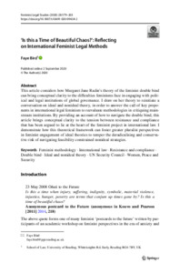 Bird, F. ORCID: https://orcid.org/0000-0002-6867-1690 (2020) ‘Is this a time of beautiful chaos?’: reflecting on international feminist legal methods. Feminist Legal Studies, 28 (2). pp. 179-203. ISSN 0966-3622 doi: 10.1007/s10691-020-09434-2