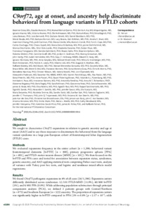 C9orf72, age at onset, and ancestry help discriminate behavioral from language variants in FTLD cohorts