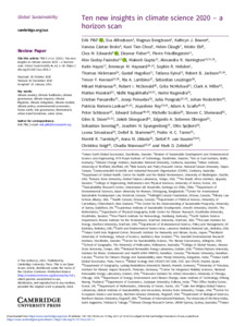 Pihl, E. ORCID: https://orcid.org/0000-0002-2728-6382, Alfredsson, E., Bengtsson, M., Bowen, K. J., Cástan Broto, V., Chou, K. T., Cleugh, H., Ebi, K., Edwards, C. M. ORCID: https://orcid.org/0000-0002-4343-4904, Fisher, E., Friedlingstein, P., Godoy-Faúndez, A. ORCID: https://orcid.org/0000-0002-9609-9863, Gupta, M., Harrington, A. R., Hayes, K., Hayward, B. M., Hebden, S. R., Hickmann, T., Hugelius, G., Ilyina, T., Jackson, R. B., Keenan, T. F., Lambino, R. A., Leuzinger, S., Malmaeus, M., McDonald, R. I., McMichael, C., Miller, C. A., Muratori, M., Nagabhatla, N., Nagendra, H., Passarello, C., Penuelas, J., Pongratz, J., Rockström, J., Romero-Lankao, P., Roy, J., Scaife, A. A., Schlosser, P., Schuur, E., Scobie, M., Sherwood, S. C., Sioen, G. B., Skovgaard, J., Sobenes Obregon, E. A., Sonntag, S., Spangenberg, J. H., Spijkers, O., Srivastava, L., Stammer, D. B., Torres, P. H. C., Turetsky, M. R., Ukkola, A. M., van Vuuren, D. P., Voigt, C., Wannous, C. and Zelinka, M. D. (2021) Ten new insights in climate science 2020 – a horizon scan. Global Sustainability, 4. ISSN 2059-4798 doi: 10.1017/sus.2021.2