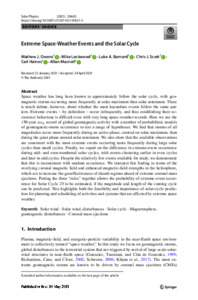 Owens, M. J. ORCID: https://orcid.org/0000-0003-2061-2453, Lockwood, M. ORCID: https://orcid.org/0000-0002-7397-2172, Barnard, L. A. ORCID: https://orcid.org/0000-0001-9876-4612, Scott, C. J. ORCID: https://orcid.org/0000-0001-6411-5649, Haines, C. ORCID: https://orcid.org/0000-0002-9010-0720 and Macneil, A. ORCID: https://orcid.org/0000-0003-4802-1209 (2021) Extreme space-weather events and the solar cycle. Solar Physics, 296 (82). ISSN 0038-0938 doi: 10.1007/s11207-021-01831-3