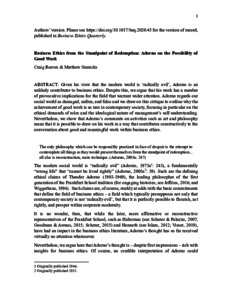 Business ethics from the standpoint of redemption: Adorno on the Possibility of Good Work