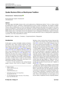 Burton, N. and Sinnicks, M. (2022) Quaker business ethics as MacIntyrean tradition. Journal of Business Ethics, 176 (3). pp. 507-518. ISSN 1573-0697 doi: 10.1007/s10551-020-04706-y