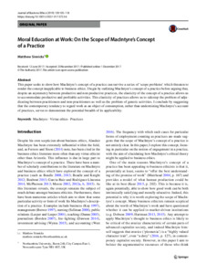 Sinnicks, M. (2019) Moral education at work: on the scope of MacIntyre’s concept of a practice. Journal of Business Ethics, 159 (1). pp. 105-118. ISSN 1573-0697 doi: 10.1007/s10551-017-3753-6