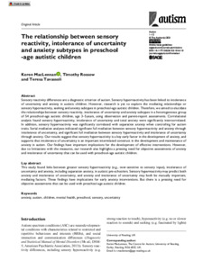 The relationship between sensory reactivity, intolerance of uncertainty and anxiety subtypes in preschool-age autistic children.