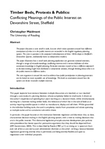 Maidment, C. ORCID: https://orcid.org/0000-0002-9158-6910 (2021) Timber beds, protests & publics: conflicting meanings of the public interest on Devonshire Street, Sheffield. Town Planning Review, 92 (4). pp. 587-614. ISSN 1478-341X doi: 10.3828/tpr.2021.25