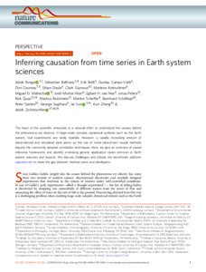 Runge, J. ORCID: https://orcid.org/0000-0002-0629-1772, Bathiany, S., Bollt, E., Camps-Valls, G., Coumou, D., Deyle, E., Glymour, C., Kretschmer, M. ORCID: https://orcid.org/0000-0002-2756-9526, Mahecha, M. D. ORCID: https://orcid.org/0000-0003-3031-613X, Muñoz-Marí, J., van Nes, E. H., Peters, J., Quax, R., Reichstein, M., Scheffer, M., Schölkopf, B., Spirtes, P., Sugihara, G., Sun, J. ORCID: https://orcid.org/0000-0003-2553-1804, Zhang, K. and Zscheischler, J. ORCID: https://orcid.org/0000-0001-6045-1629 (2019) Inferring causation from time series in Earth system sciences. Nature Communications, 10 (1). 2553. ISSN 2041-1723 doi: 10.1038/s41467-019-10105-3