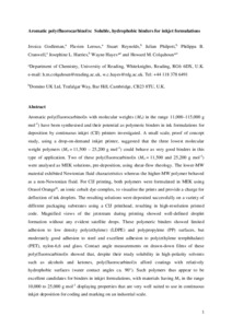 Godleman, J., Leroux, F., Reynolds, S., Philpott, J., Cranwell, P. B. ORCID: https://orcid.org/0000-0001-7156-5576, Harries, J. L., Hayes, W. ORCID: https://orcid.org/0000-0003-0047-2991 and Colquhoun, H. M. (2021) Aromatic poly(fluorocarbinol)s: soluble, hydrophobic binders for inkjet formulations. Progress in Organic Coatings, 158. 106378. ISSN 0300-9440 doi: 10.1016/j.porgcoat.2021.106378