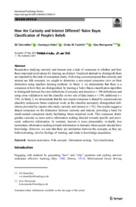 Donnellan, E., Aslan, S., Fastrich, G. M. and Murayama, K. (2022) How are curiosity and interest different? Naïve Bayes Classification of people's beliefs. Educational Psychology Review, 34. pp. 73-105. ISSN 1040-726X doi: 10.1007/s10648-021-09622-9