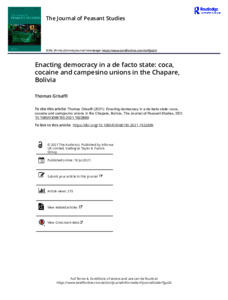 Grisaffi, T. (2022) Enacting democracy in a de facto state: coca, cocaine and campesino unions in the Chapare, Bolivia. Journal of Peasant Studies, 49 (6). pp. 1273-1294. ISSN 0306-6150 doi: 10.1080/03066150.2021.1922889