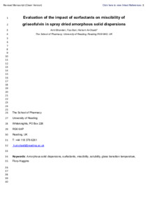 Evaluation of the impact of surfactants on miscibility of griseofulvin in spray dried amorphous solid dispersions