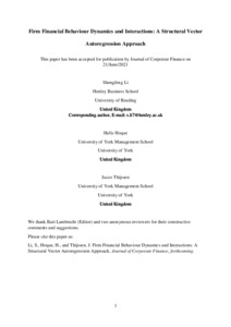 Li, S., Hoque, H. and Thijssen, J. (2021) Firm financial behaviour dynamics and interactions: a structural vector autoregression approach. Journal of Corporate Finance, 69. 102028. ISSN 0929-1199 doi: 10.1016/j.jcorpfin.2021.102028