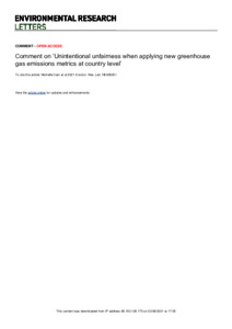 Comment on ‘unintentional unfairness when applying new greenhouse gas emissions metrics at country level'.