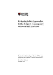 Gaultney, J. V. (2021) Designing italics: Approaches to the design of contemporary secondary text typefaces. PhD thesis, University of Reading. doi: 10.48683/1926.00099060