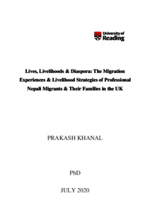Khanal, P. (2021) Lives, Livelihoods & Diaspora: The Migration Experiences & Livelihood Strategies of Professional Nepali Migrants & Their Families in the UK. PhD thesis, University of Reading. doi: 10.48683/1926.00099075