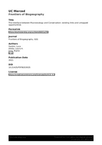 Santini, L., Antao, L. H., Jung, M., Benitez-Lopez, A., Rapacciuolo, G., Di Marco, M., Jones, F. A. M., Haghkerdar, J. M. and Gonzalez-Suarez, M. ORCID: https://orcid.org/0000-0001-5069-8900 (2021) The interface between macroecology and conservation: existing links and untapped opportunities. Frontiers in Biogeography, 13 (4). e53025. ISSN 1948-6596 doi: 10.21425/F5FBG53025