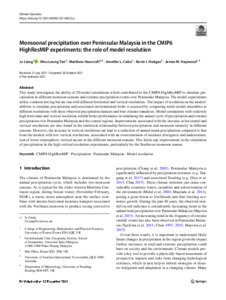 Monsoonal precipitation over Peninsular Malaysia in the CMIP6 HighResMIP experiments: the role of model resolution.