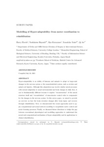 Hyper-adaptability is an ability of humans and animals to adapt to large-scale changes in the nervous system or the musculoskeletal system, such as strokes and spinal cord injuries. Although this adaptation may involve similar neural processes with normal adaptation to usual environmental and body changes in daily lives, it can be fundamentally different because it requires ‘construction’ of the neural structure itself and ‘reconstitution’ of sensorimotor control rules to compensate for the changes in the nervous system. In this survey paper, we aimed to provide an overview on how the brain structure changes after brain injury and recovers through rehabilitation. Next, we demonstrated the recent approaches used to apply computational and neural network modeling to recapitulate motor control and motor learning processes. Finally, we discussed future directions to bridge the gap between conventional physiological and modeling approaches to understand the neural and computational mechanisms of hyper-adaptability and its applications to clinical rehabilitation.