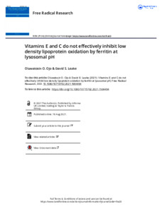Vitamins E and C do not effectively inhibit low density lipoprotein oxidation by ferritin at lysosomal pH.