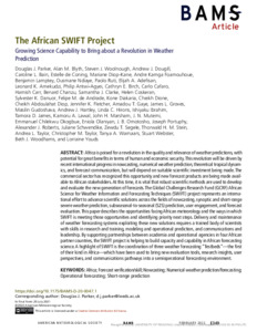 Africa is poised for a revolution in the quality and relevance of weather predictions, with potential for great benefits in terms of human and economic security. This revolution will be driven by recent international progress in nowcasting, numerical weather prediction, theoretical tropical dynamics and forecast communication, but will depend on suitable scientific investment being made. The commercial sector has recognized this opportunity and new forecast products are being made available to African stakeholders. At this time, it is vital that robust scientific methods are used to develop and evaluate the new generation of forecasts. The GCRF African SWIFT project represents an international effort to advance scientific solutions across the fields of nowcasting, synoptic and short-range severe weather prediction, subseasonal-to-seasonal (S2S) prediction, user engagement and forecast evaluation. This paper describes the opportunities facing African meteorology and the ways in which SWIFT is meeting those opportunities and identifying priority next steps. Delivery and maintenance of weather forecasting systems exploiting these new solutions requires a trained body of scientists with skills in research and training; modelling and operational prediction; communications and leadership. By supporting partnerships between academia and operational agencies in four African partner countries, the SWIFT project is helping to build capacity and capability in African forecasting science. A highlight of SWIFT is the coordination of three weather-forecasting “Testbeds” – the first of their kind in Africa – which have been used to bring new evaluation tools, research insights, user perspectives and communications pathways into a semi-operational forecasting environment.