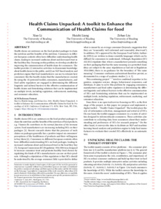Li, X., Liang, H. and Liu, Z. (2021) Health claims unpacked: a toolkit to enhance the communication of health claims for food. In: The Conference on Information and Knowledge Management (CIKM), 1-5 NOV 2021, Gold Coast, Queensland, Australia, pp. 4744-4748. doi: 10.1145/3459637.3481984 (CIKM '21: Proceedings of the 30th ACM International Conference on Information & Knowledge Management)