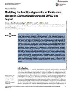 Chandler, R. J., Cogo, S., Lewis, P. A. and Kevei, E. ORCID: https://orcid.org/0000-0002-0560-9208 (2021) Modelling the functional genomics of Parkinson’s in Caenorhabditis elegans: LRRK2 and beyond. Bioscience Reports, 41 (9). BSR20203672. ISSN 0144-8463 doi: 10.1042/BSR20203672