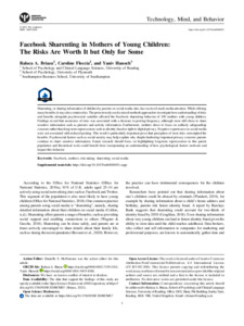 Briazu, R. A., Floccia, C. and Hanoch, Y. (2021) Facebook sharenting in mothers of young children: the risks are worth it but only for some. Technolog, Mind, and Behavior, 2 (4). ISSN 2689-0208 doi: 10.1037/tmb0000051