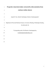 Properties of protein isolates extracted by ultrasonication from soybean residue (okara).