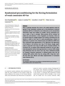 Randomised preconditioning for the forcing formulation of weak constraint 4D‐Var.