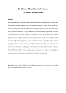 We explore the effect of launching mobile channels on online customer reviews. We show that the launch of mobile channels does not significantly influence online review generation, contrary to the general expectation that the accessibility of mobile channels stimulates online review generation intention. Using a Difference-In-Difference (DID) approach to analyzing review data from online travel websites, we find that the launch of a mobile channel does not affect the volume and the average rating of the generated reviews. However, we discover that reviewers with extreme experiences tend to use mobile devices to post their online reviews, providing evidence that the new channel introduction influences only the device chosen to post online reviews. Based on our findings, we extend extant literature and research on electronic Word of Mouth (eWOM) and develop business implications for online review platform managers on a mobile channel strategy that could improve business value.